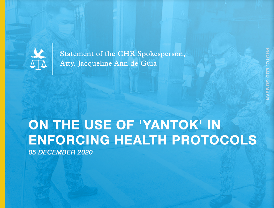 We recognise that the unknown nature of the pandemic has pushed others, including the government, into devising different, novel ways in enforcing health safety protocols so as to prevent Covid-19 infection among the population. However, the Commission on Human Rights (CHR) has repeatedly stressed the importance of respecting the human rights and dignity of all as we address this health crisis.