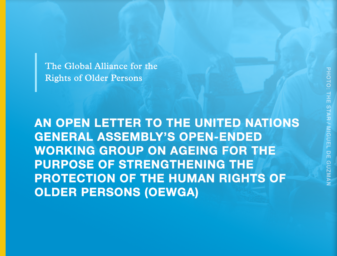As human rights advocates from different backgrounds and regions of the world, we want a world where we can all age with rights, dignity and respect. The OEWGA can help to make this vision a reality by fulfilling its mandate to consider proposals for an international legal instrument to promote and protect the rights and dignity of older persons and to present to the UN General Assembly a proposal containing the main elements of such instrument.