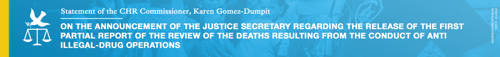 The Commission on Human Rights acknowledges the announcement of Justice Secretary Menardo Guevarra regarding the release of the partial report conducted by a high-level inter-agency panel of the thousands of deaths resulting from the conduct of recent anti-illegal drug operations.