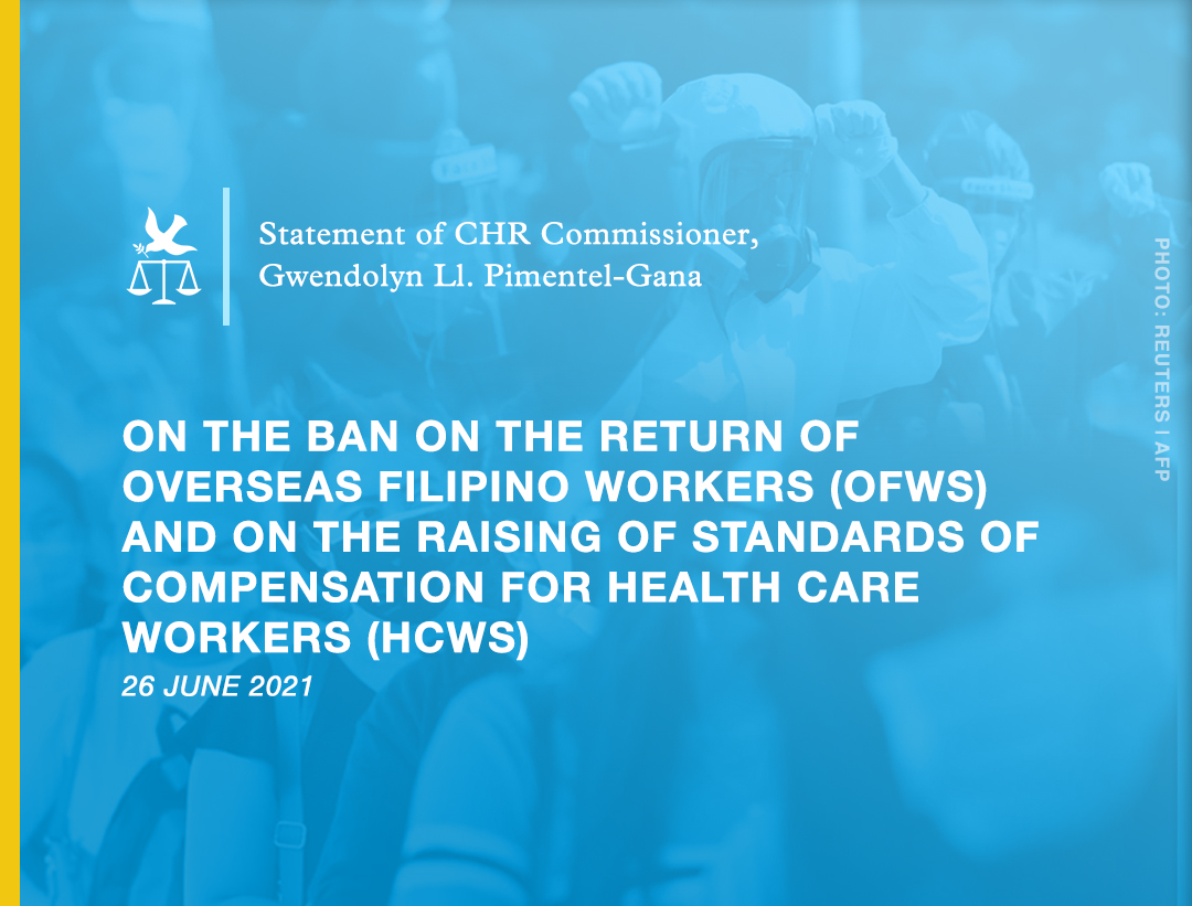 The CHR draws particular attention to the current plight of stranded Overseas Filipino Workers (OFWs) and Health Care Workers (HCWs).