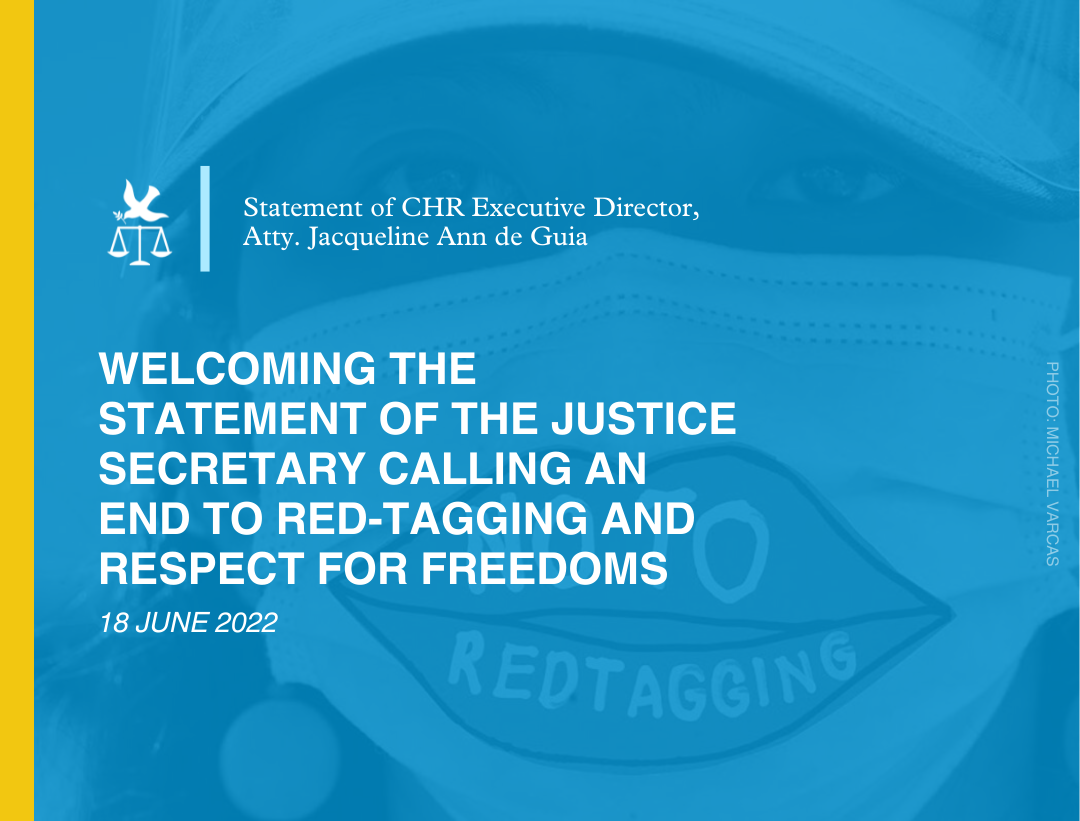 The Commission on Human Rights (CHR) welcomes the statement of Justice Secretary Menardo Guevarra urging an end to red tagging.