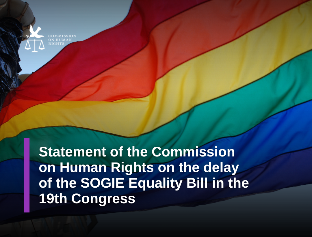 The Commission, as Gender and Development Ombud, expresses serious concern over the current setbacks in the deliberation of the SOGIE Equality bills in the 19th Congress.