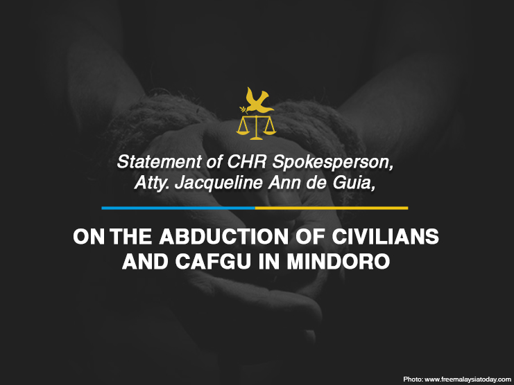 Statement of CHR spokesperson, Atty. Jacqueline Ann de Guia, on the abduction of civilians and CAFGU in Mindoro