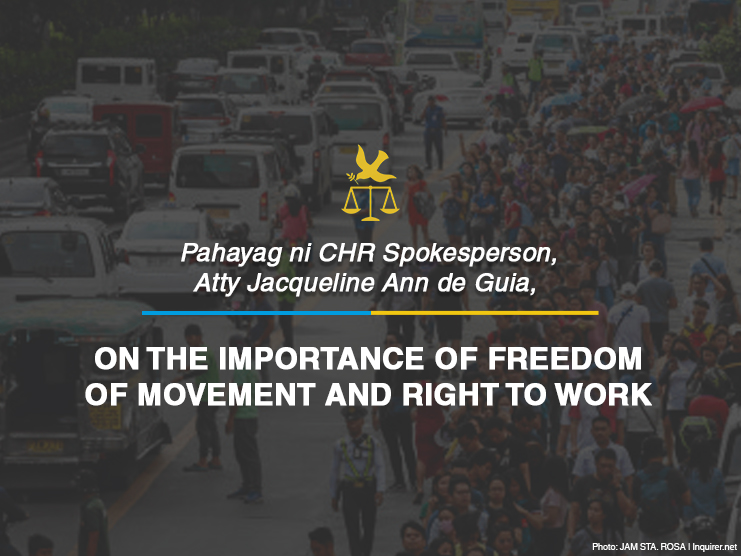 Statement of CHR spokesperson, Atty Jacqueline Ann de Guia, on the Importance of Freedom of Movement and Right to Work