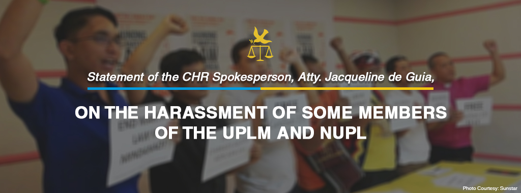 Statement of CHR Spokesperson, Atty. Jacqueline Ann de Guia, on the harassment of some members of the UPLM and NUPL