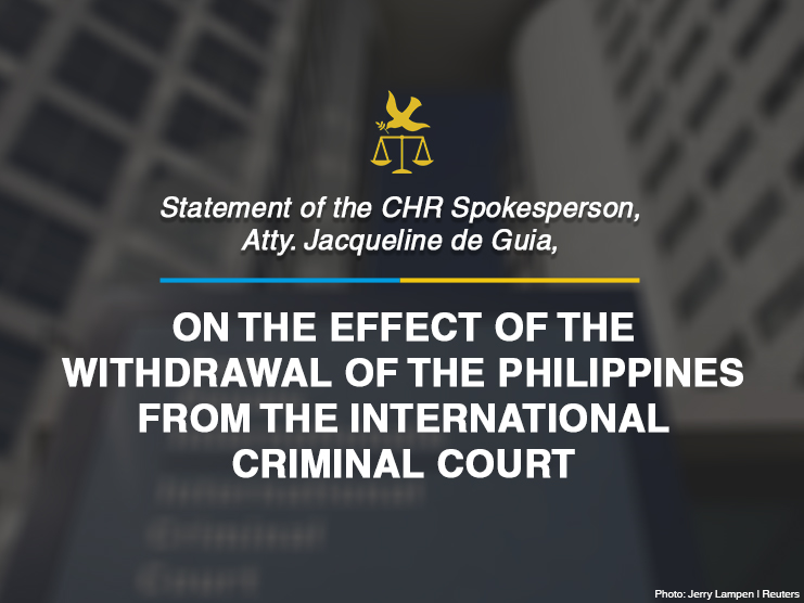 Statement of CHR spokesperson, Atty. Jacqueline Ann de Guia, on the effect of the withdrawal of the Philippines from the International Criminal Court